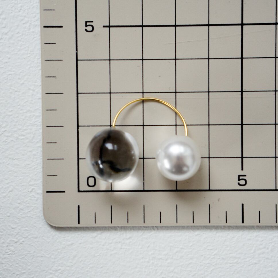 丸くて美しいクリアボールとパールキャッチを用いた不思議なフープアクセサリー